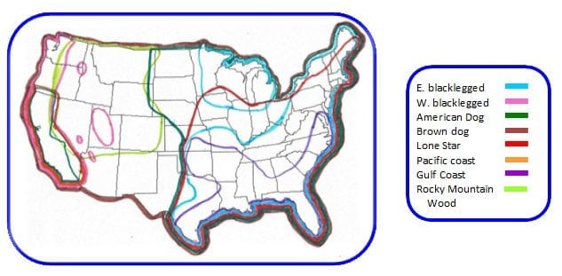 The US hosts a wide variety of hard and soft tick species. There is considerable overlap in the ticks’ ranges and, as this map illustrates, several areas of the country are home to 3 or more species.